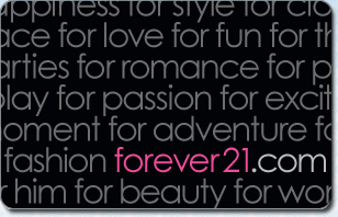 Forever 21 Gift Card | GiftCards.com Give Forever 21 Gift Cards for the hottest, most current fashions for women, men and children at affordable prices. ... You will only be charged the face value of the Forever 21 eGift Card. If you choose a Forever 21 Plastic Card there will also be minimal shipping fees. ... Visit any Forever 21 store and ask a cashier to check the balance for you;