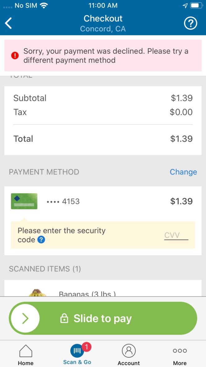 Help with Scan & Go - Sam's Club Select Add a payment card to add your EBT card to as mode of payment. Choose EBT card * on the 'Add a payment card' prompt. *EBT must be selected for every transaction, or the default credit/debit card will be charged. Enter your EBT card details as seen on the screen. Select 'EBT card' as payment method before selecting 'Slide to Pay.'