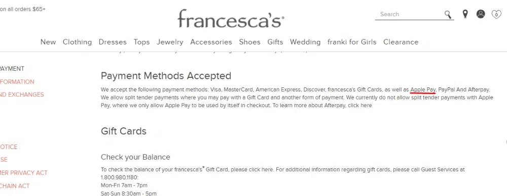 Francesca's gift card where to buy